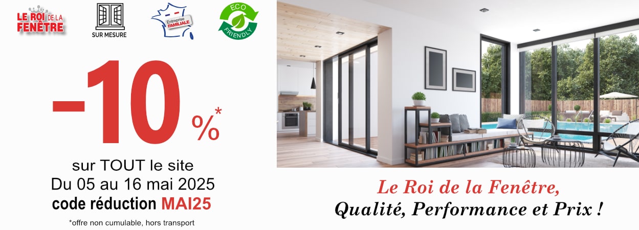 Fabricant de menuiseries PVC, Alu et Bois, sur mesure depuis 1938, avec ses usines situées dans les Deux-sèvres (79), le Roi de la Fenêtre, marque de vente en ligne du Groupe Ridoret , fournisseur de menuiseries à poser soi-même, vous propose sa gamme de menuiseries extérieures pour le neuf et la rénovation avec un excellent rapport qualité prix direct usine. Vous trouverez sur notre site un choix de fenêtres sur mesure, portes-fenêtres de qualité sur mesure, volets battants ou roulants, mais également des grandes baies vitrées de qualité coulissantes à galandage et des portes d’entrée et de service PVC Alu ou Acier.