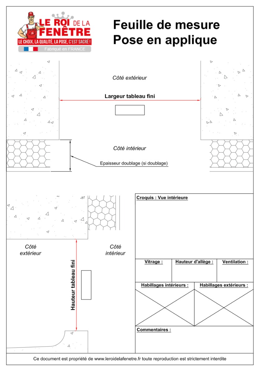 Sur Le Roi de la Fenêtre, nous mettons à disposition de nos clients, des fiches de métré pour une rénovation ou neuf et selon les types de poses.