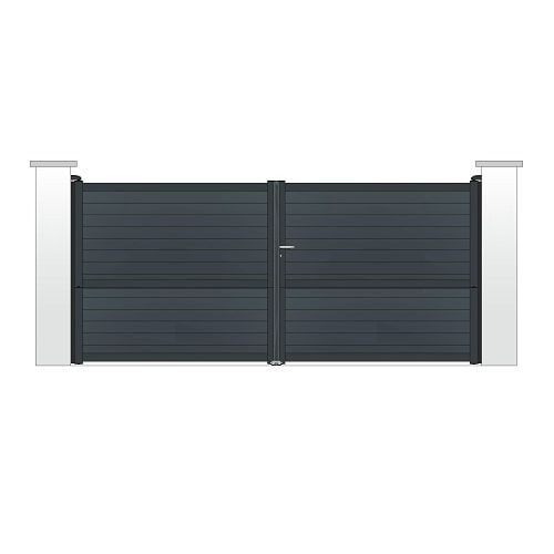 Son ouverture à deux vantaux permet un passage confortable pour les véhicules tout en conservant une largeur adaptée aux espaces résidentiels. Il est également compatible avec une motorisation pour plus de praticité au quotidien.