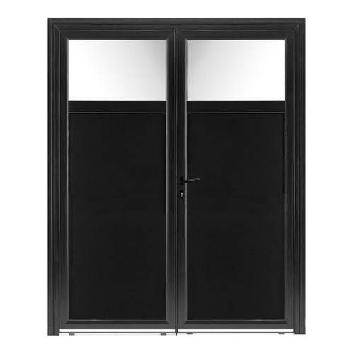 Porte de service ALU 2 vantaux ouverture à la française avec Oculus